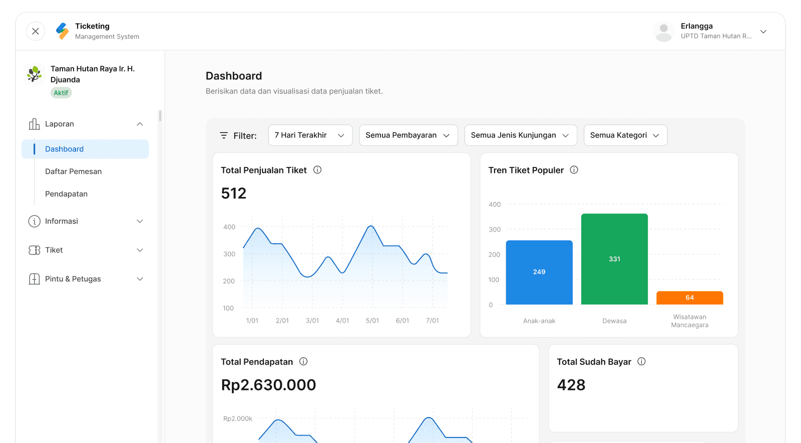 The Ticketing Management System (TMS) is currently being piloted in several tourist attractions managed by the West Java Provincial Government, in the form of a Minimum Viable Product (MVP).