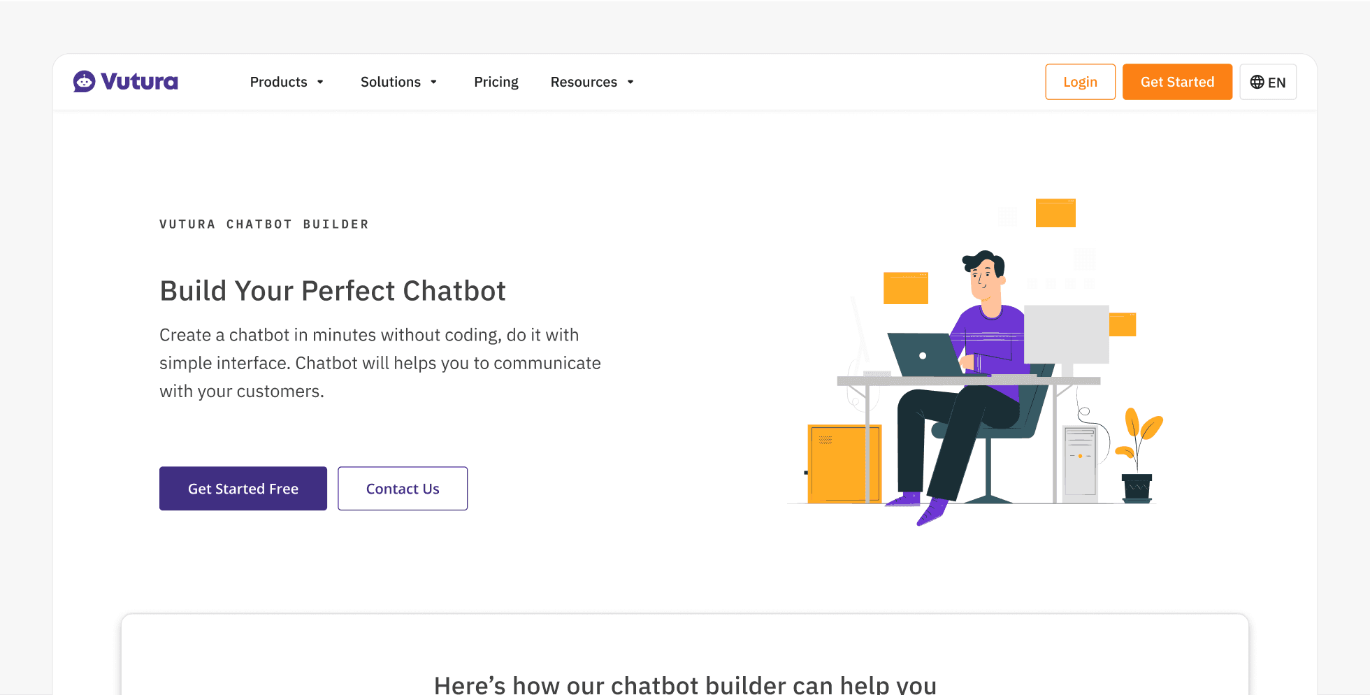 Vutura’s core products are the No-Code Chatbot Dashboard and the Landing Page, both integral to business processes and marketing efforts.
